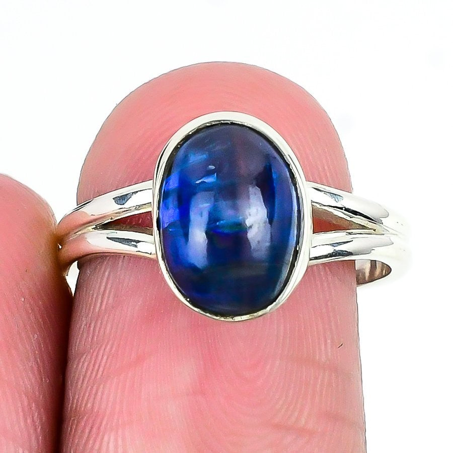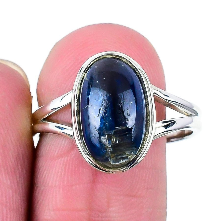 Blue Kyanite Stone 925 Sterling Silver Anniversary Boho Statement Ring Size 7.5