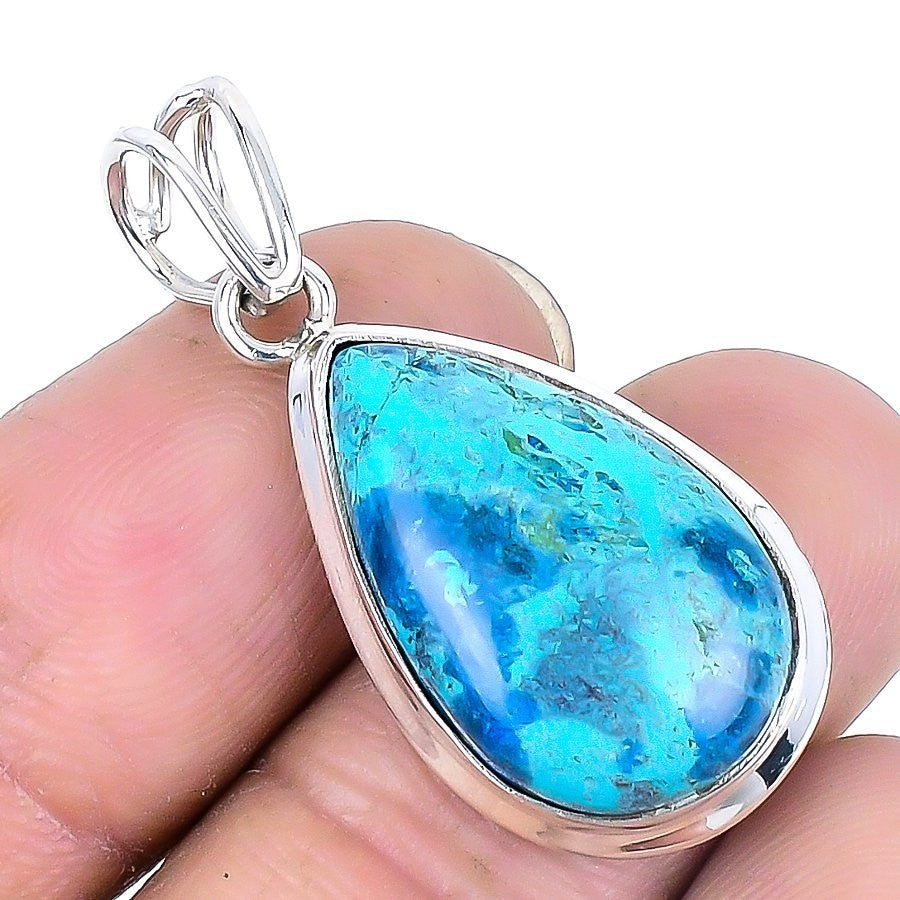 Throat Chakra Natural Chrysocolla Daughters Day New Pendant Jewelry Solid Silver