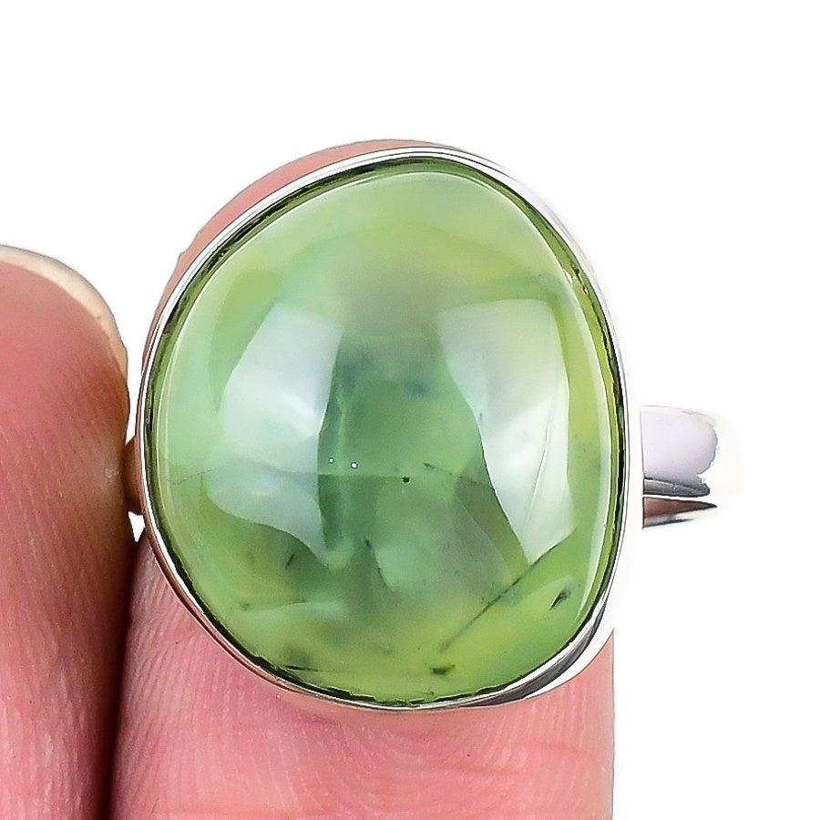 Prehnite Gemstone 925Ā SolidĀ Silver Birthday Bezel Statement Boho Ring Size 10