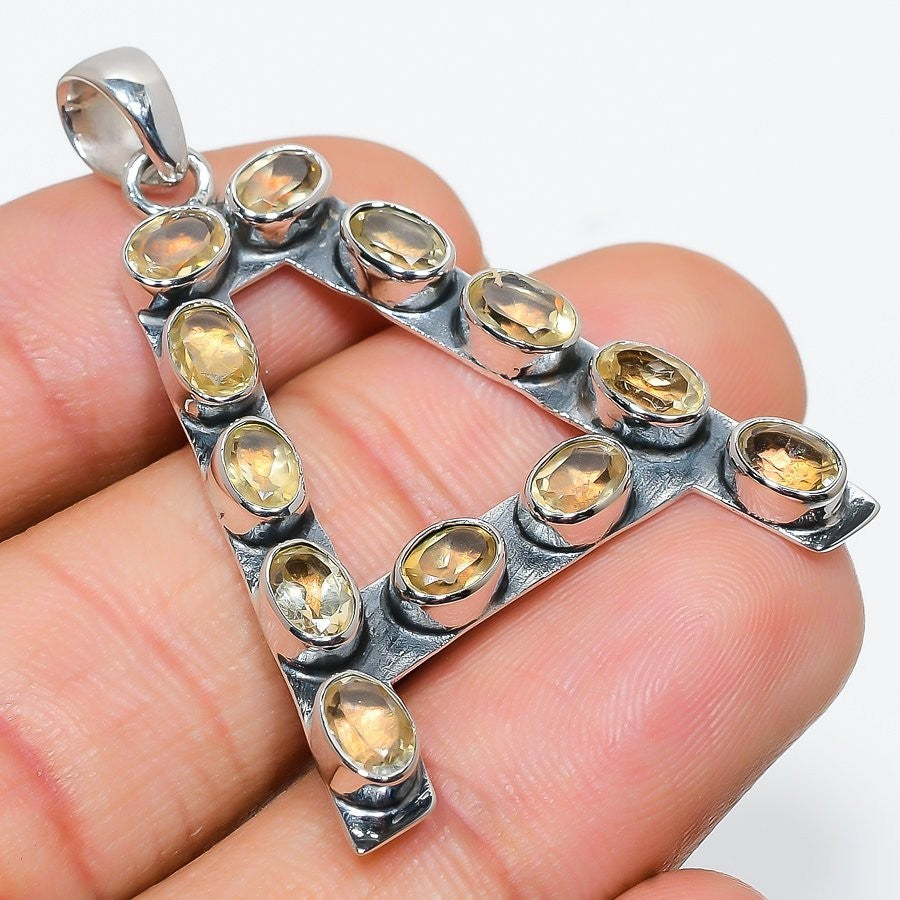 Citrine Gemstone Solid Sterling Silver Trendy Daughter Art Deco Pendant Jewelry