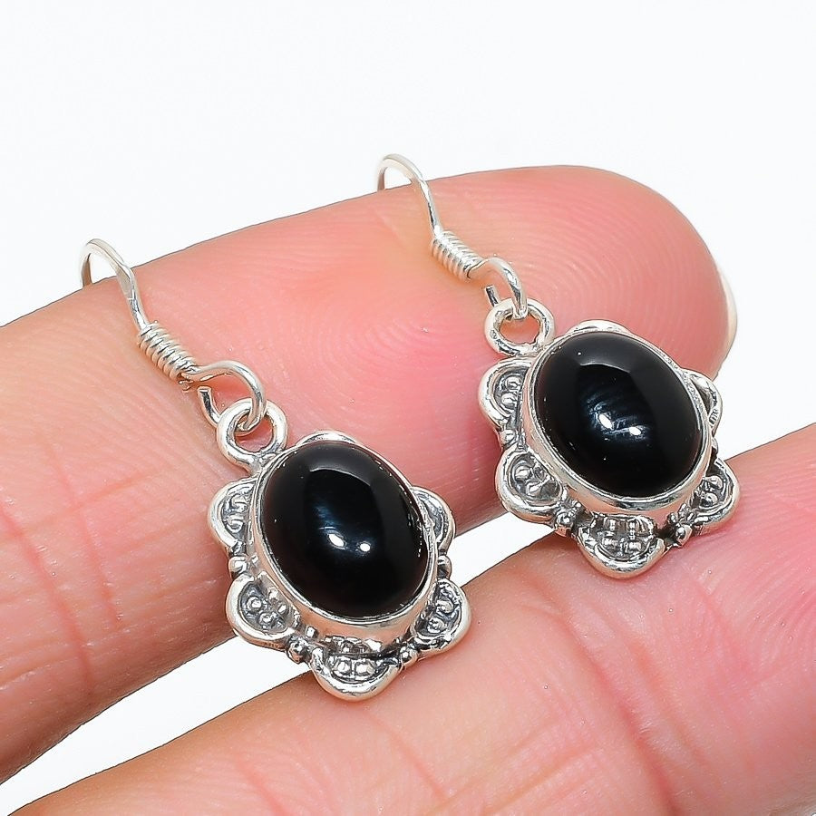 Black Onyx Stone Boho Birthday Drop Hook Earrings Jewelry Solid Sterling Silver