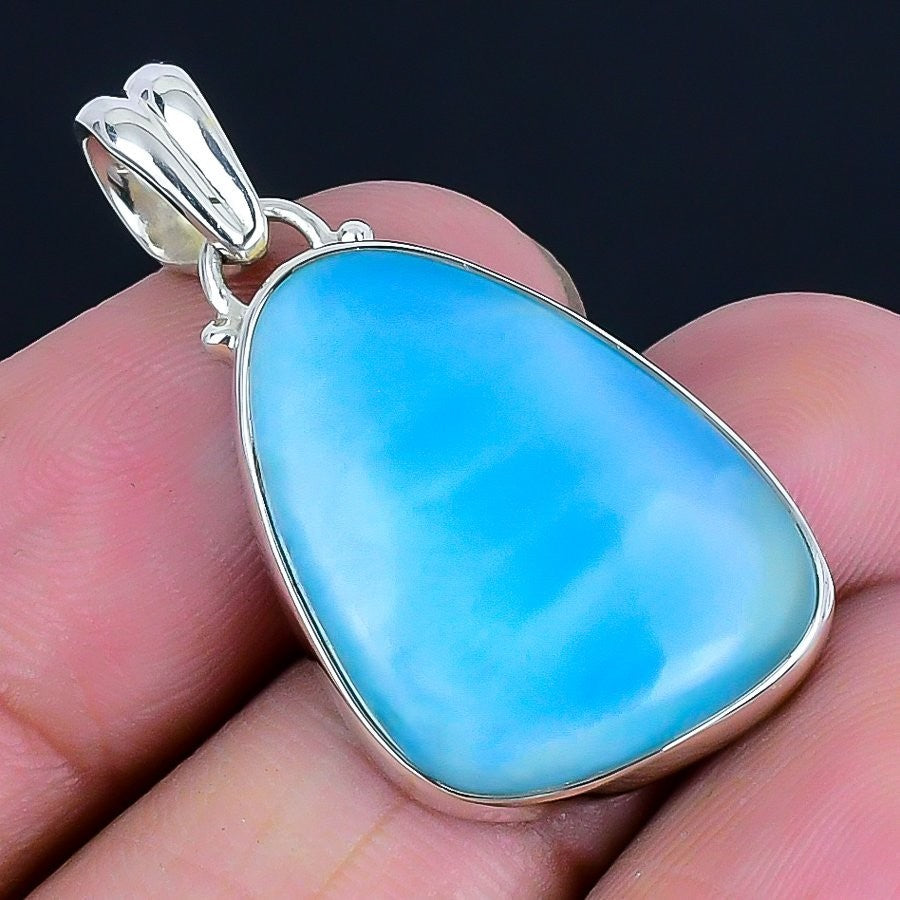 Blue Lace Agate Gemstone Sterling Silver Wedding Mother Unique Pendant Jewelry