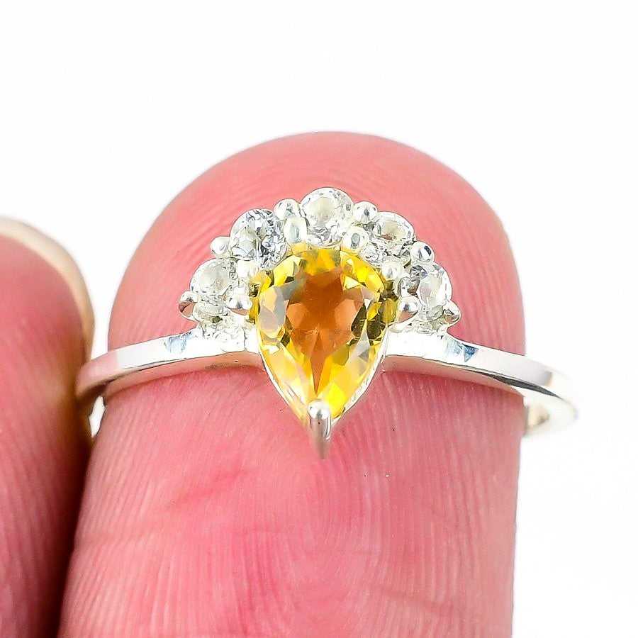 Natural Citrine 925 Silver Mother Handmade Cluster November Ring Jewelry Size 8