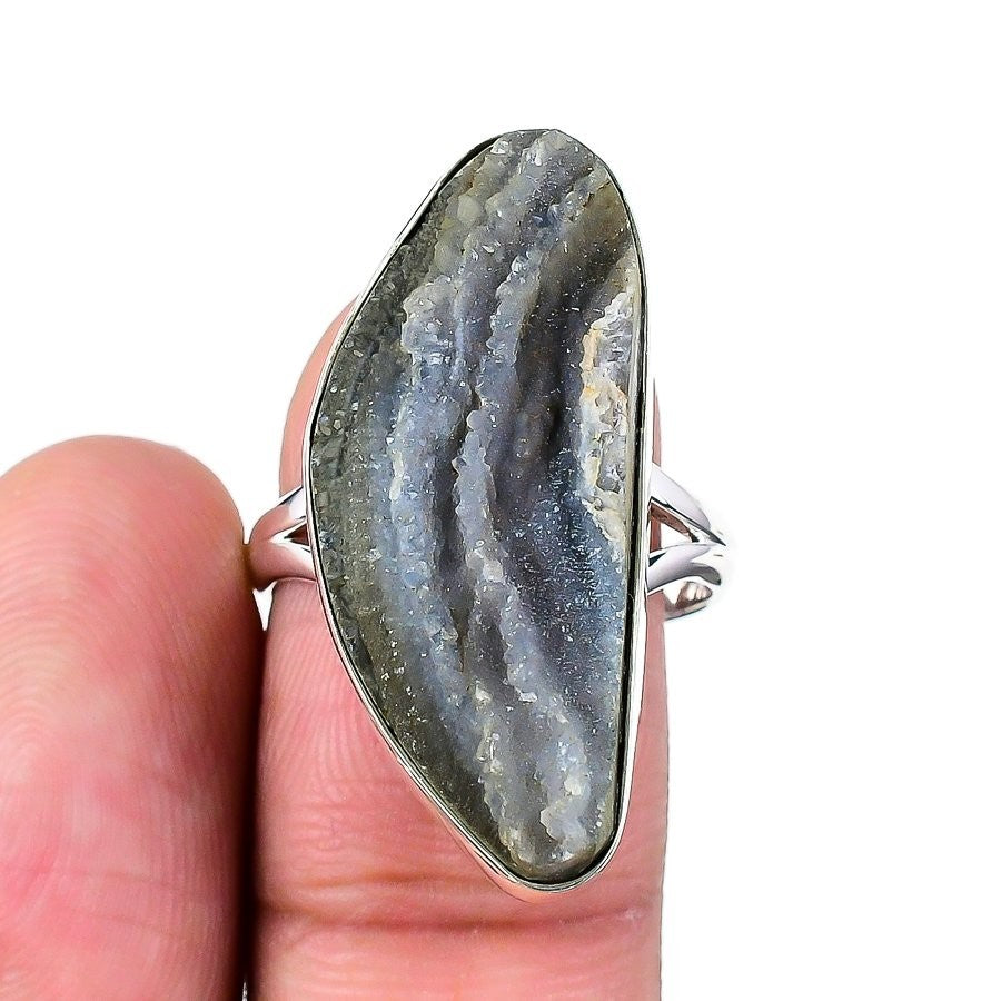 Desert Rose Druzy Stone Solid Silver Statement Handcrafted Ring Jewelry US 10