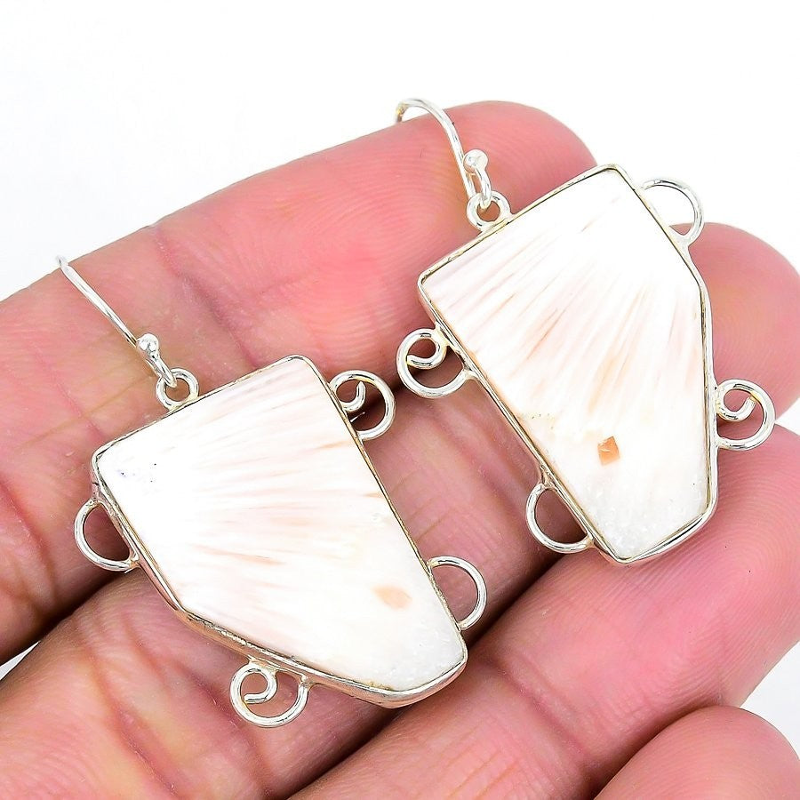 Orange Scolecite Gemstone Wedding Dangle Trendy Elegant Earrings Sterling Silver