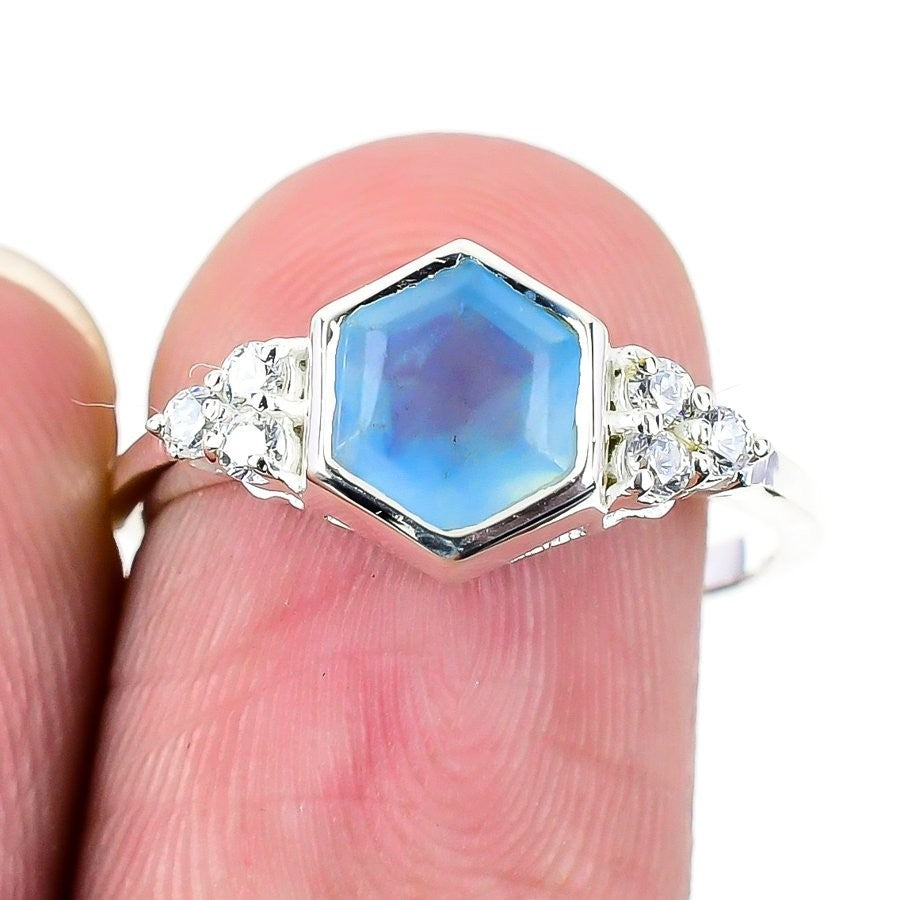 Blue Topaz Gemstone 925Ā SolidĀ Silver Statement New Anniversary Ring Jewelry US 8