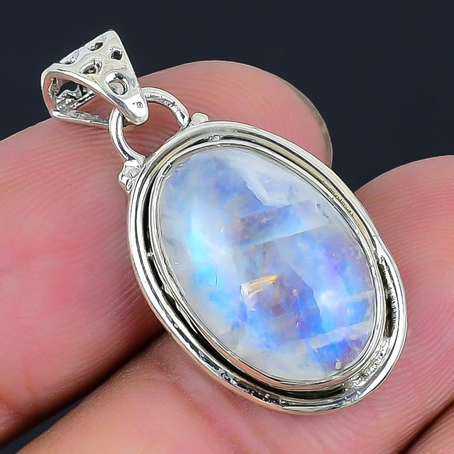 Natural Moonstone 925 Silver Channel Set Mother Daughters Day Wedding Pendant