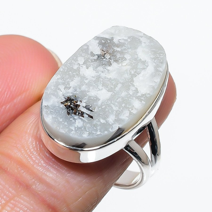 Labradorite Druzy Gemstone Daughter Statement Elegant New Ring Solid Silver US 6