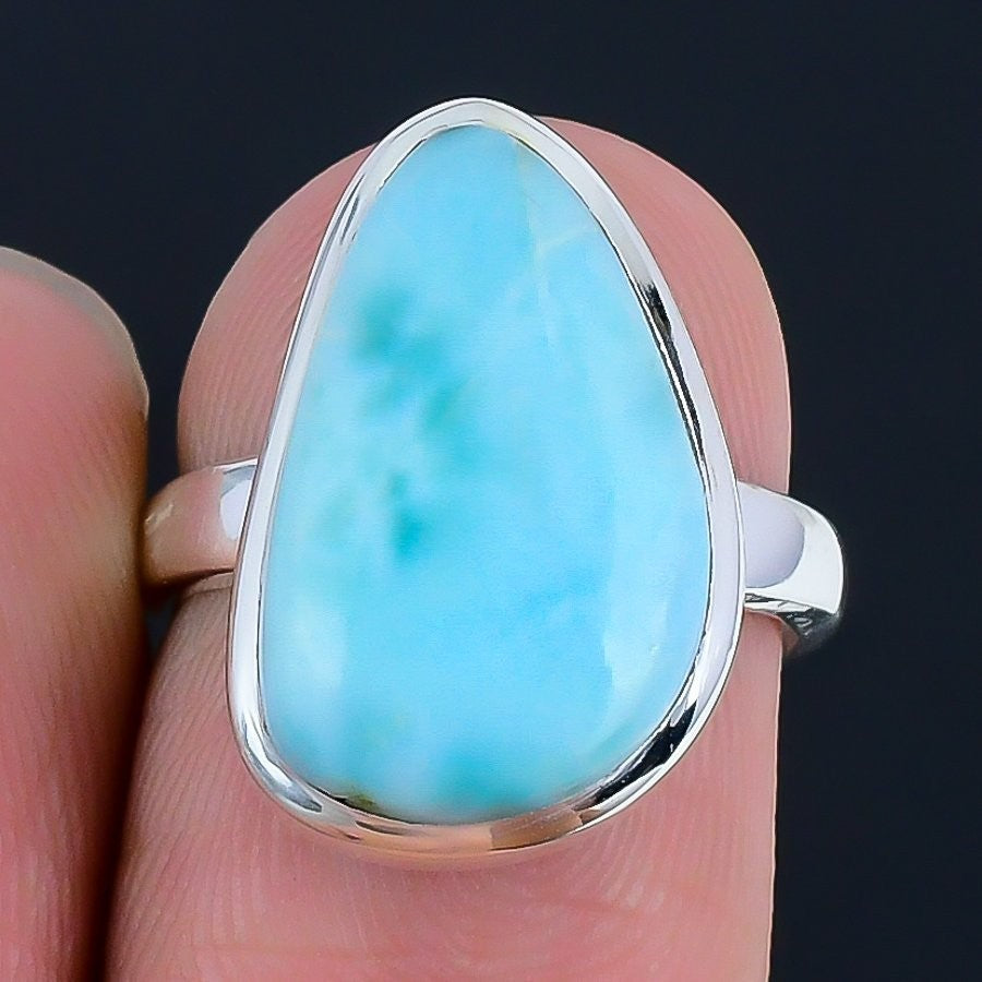 Daughters Day Sale Larimar Stone 925 Silver Mother Artisan Statement Ring Size 6