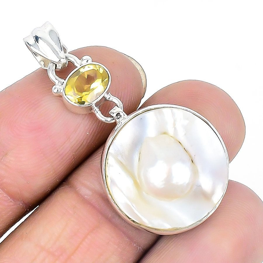 Daughters Day Deal Biwa Pearl Stone Trendy Wedding Pendant 925 Sterling Silver