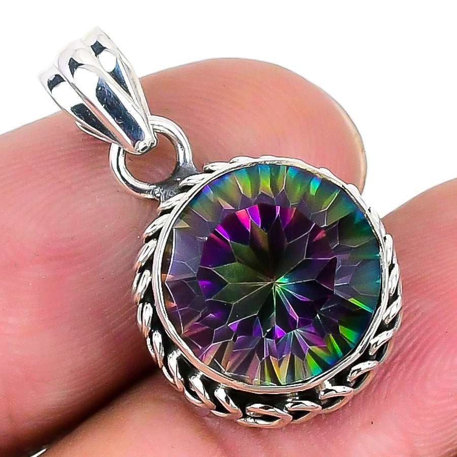 Natural Mystic Topaz 925 Sterling Silver Trendy Channel Set Wife Pendant Jewelry