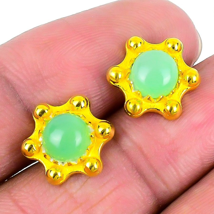 chrysophrase Gemstone 925Ā SolidĀ Silver Art Deco Stud Post Boho Earrings Jewelry