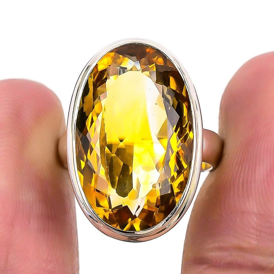 Citrine Stone Daughter Handmade Statement Elegant Ring Jewelry 925 Silver US 7