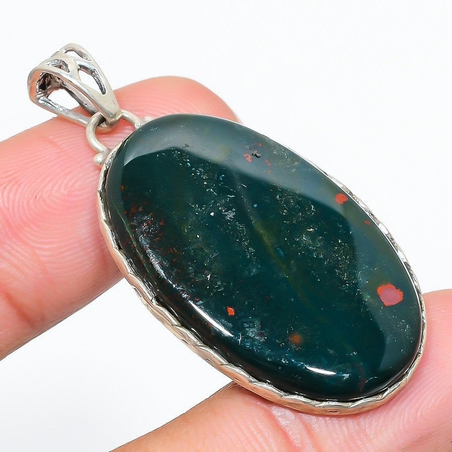 Bloodstone Gemstone 925Ā SolidĀ Silver Wife Birthday Handmade Boho Pendant Jewelry