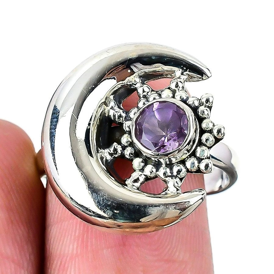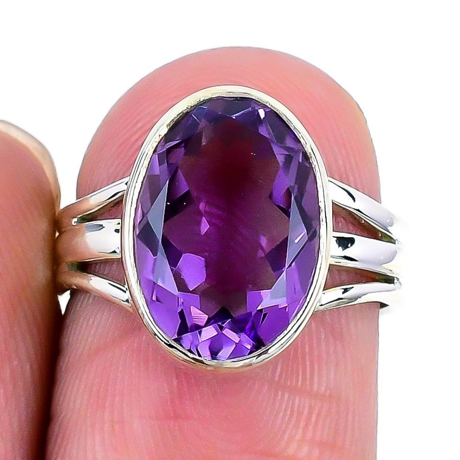 February Amethyst Stone Statement Artisan Daughter Gift Ring Jewelry 925 Silver