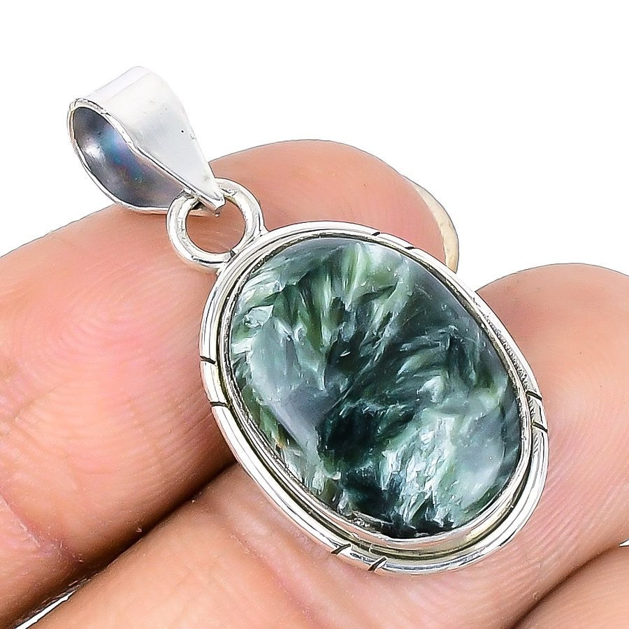 Seraphinite Stone 925 Sterling Silver Daughters Day Handcrafted Pendant Jewelry