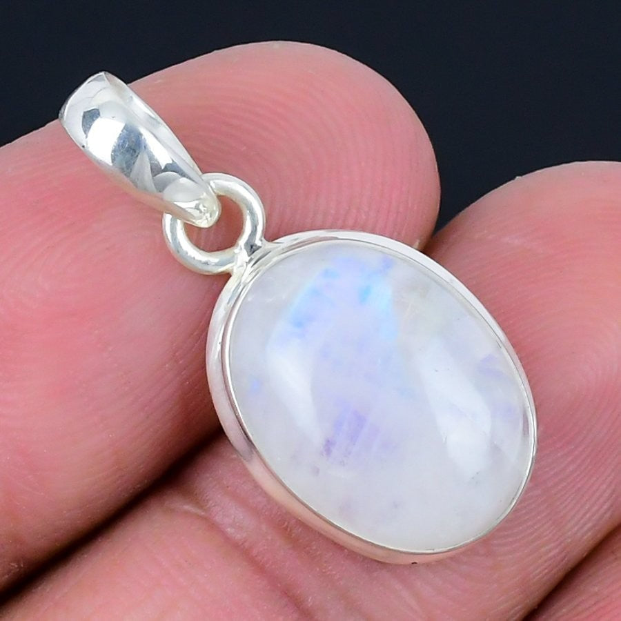 Rainbow Moonstone Stone Solid Silver Birthday Unique Crown Chakra Sister Pendant