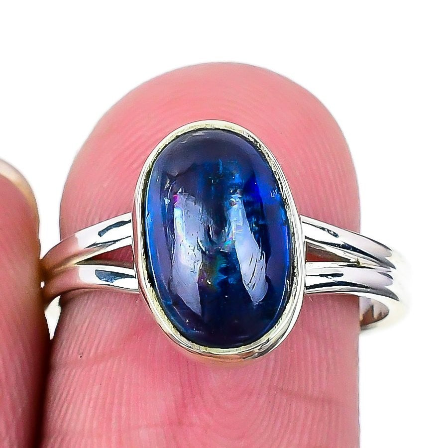 Blue Kyanite Gemstone Solid Sterling Silver Ethnic Cluster Ring Jewelry Size 7.5