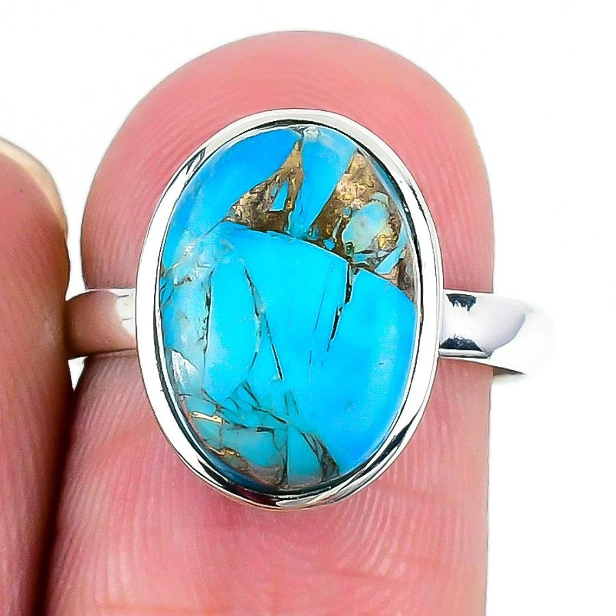 Copper Blue Turquoise Stone 925 Solid Silver Mother Statement Ring Jewelry US 7