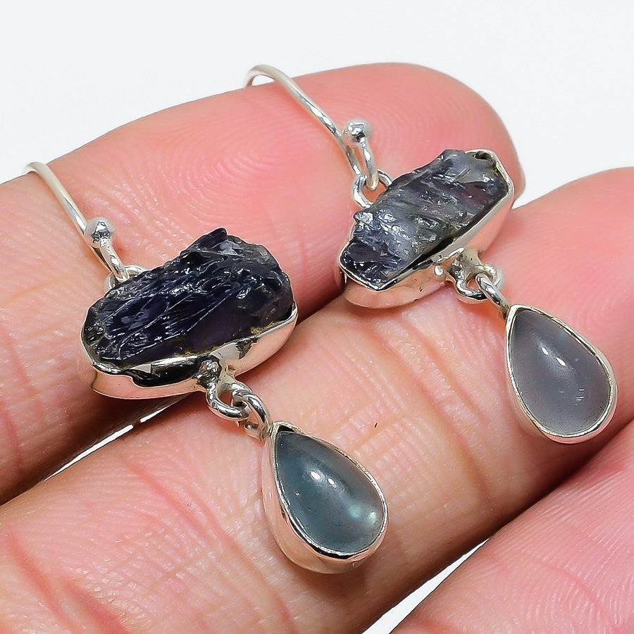 Aquamarine Gemstone Hook Drop Dangle Wife Earrings Jewelry Solid Sterling Silver