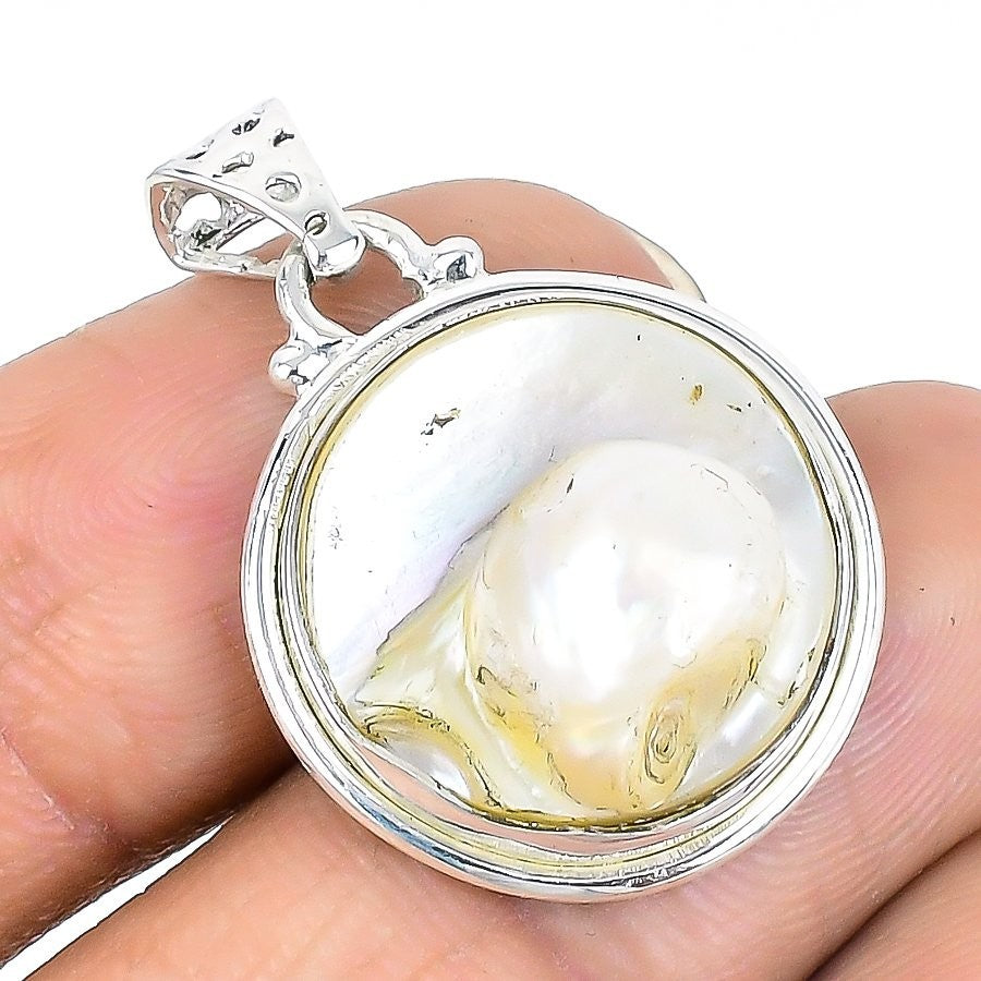 Biwa Pearl Stone 925 Sterling Silver Daughter Unique Ethnic New Pendant Jewelry