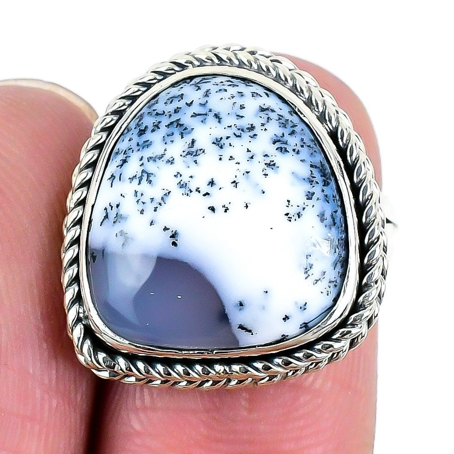 Natural Dendrite Opal 925 Solid Silver Boho Statement Daughter Gift Ring Size 6