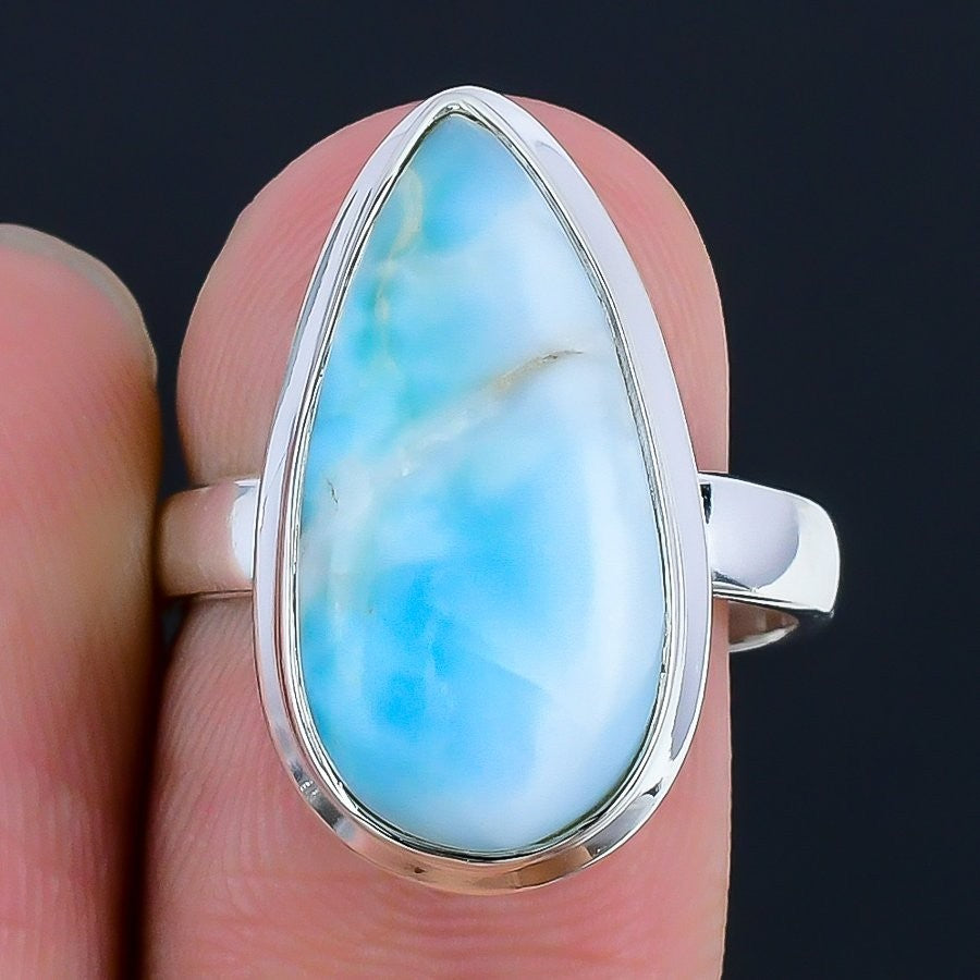 Natural Larimar Solid Sterling Silver Statement Birthday Ring Jewelry Size 10