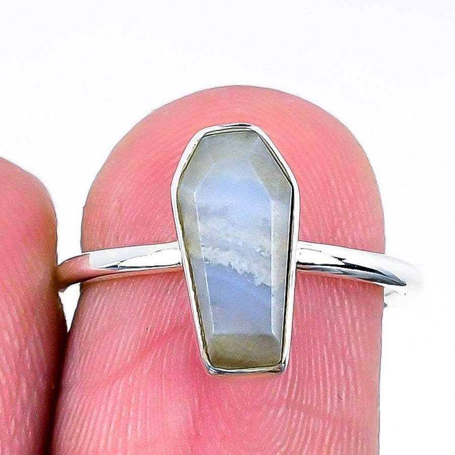 Blue Lace Agate Stone 925 Silver Ethnic Band Promise Wife Statement Ring US 6