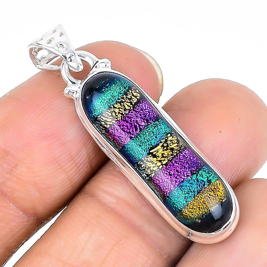 Mexican Dichoric Glass Stone 925 Silver Wedding Daughter Artisan Pendant Jewelry