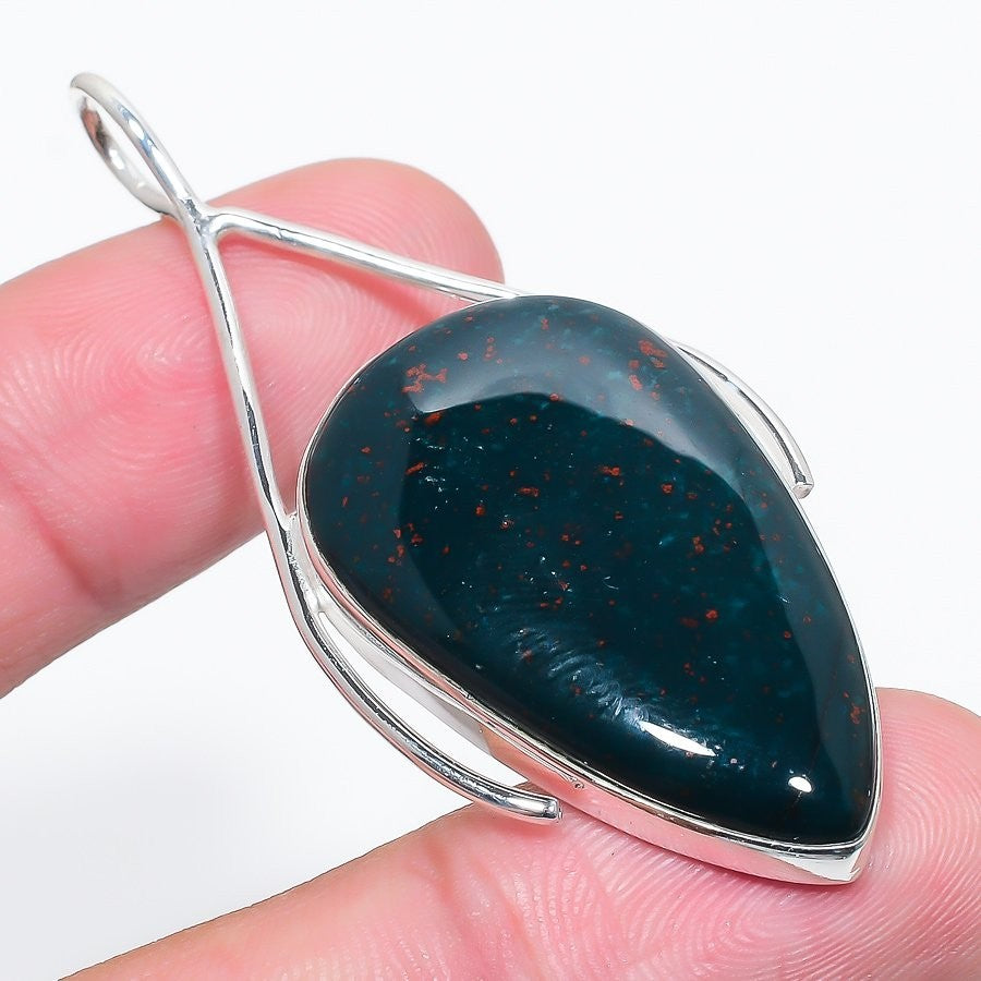 Bloodstone Gemstone Handcrafted Engagement Mother Pendant Solid Sterling Silver