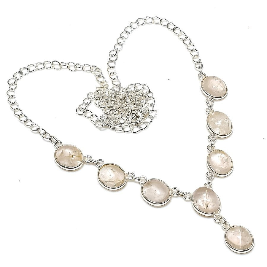 Golden Rutile Stone Solid Silver Chain Engagement Daughter Gift Necklace Jewelry