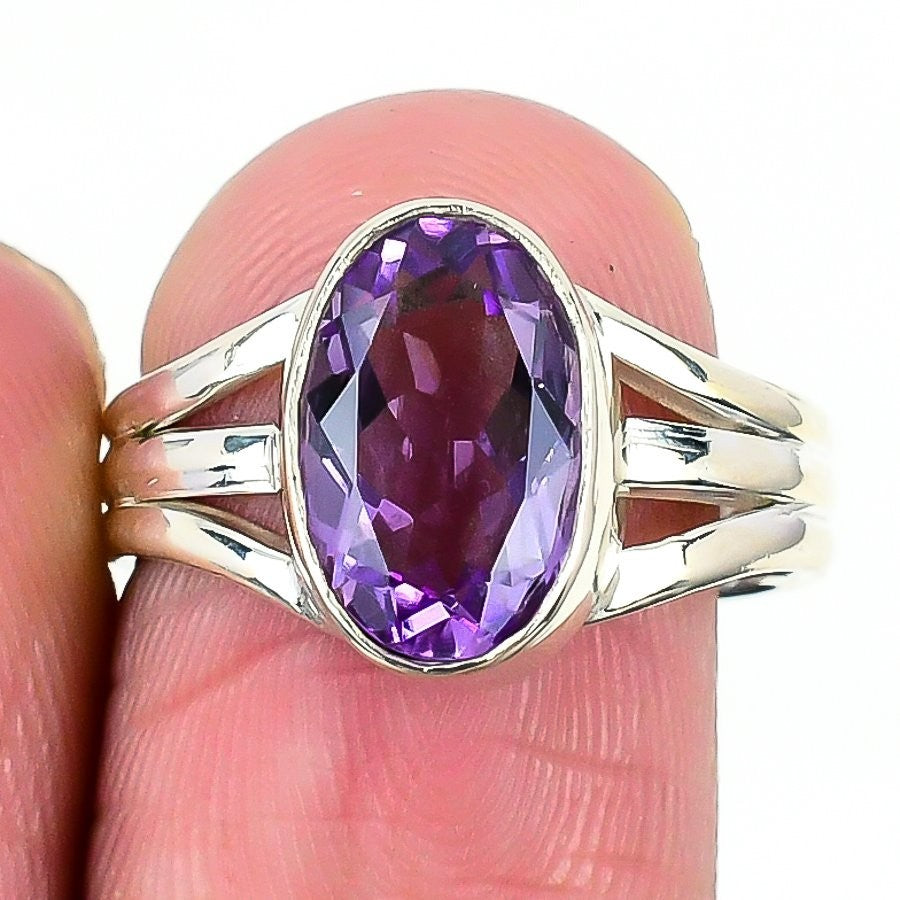 Amethyst Stone Cluster Daughter Gift Ring Jewelry Size 7.5 925 Sterling Silver