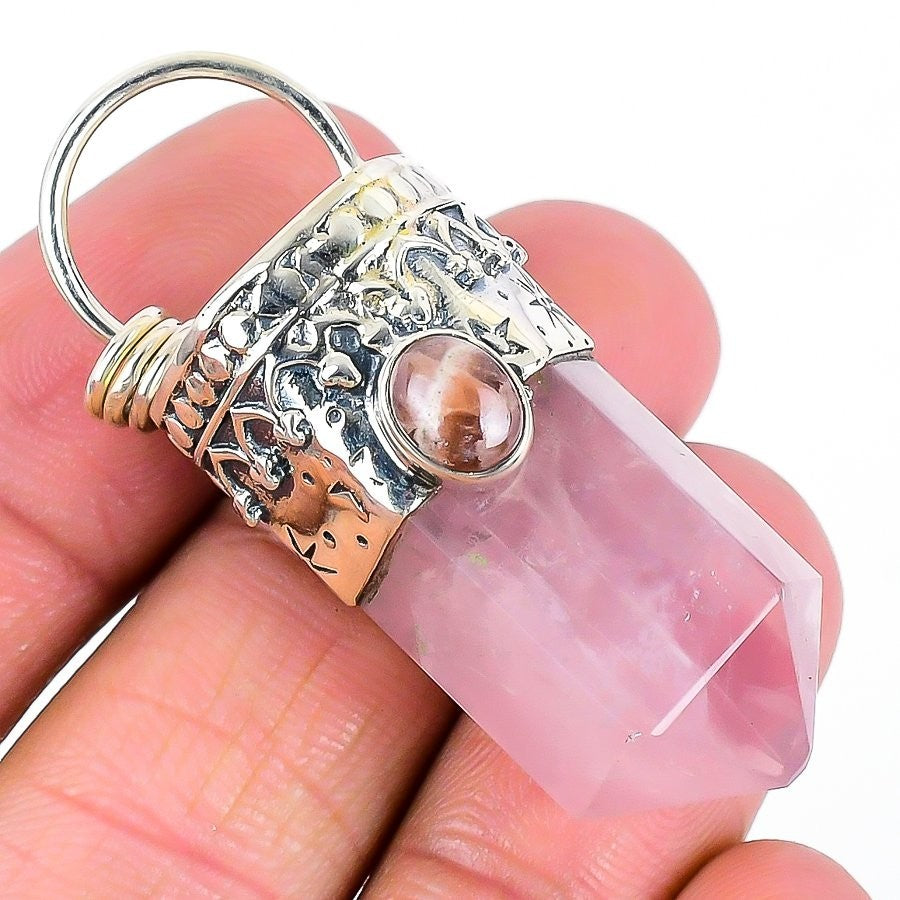 Natural Rose Quartz Sterling Silver Daughters Day Mother Ethnic Pendant Jewelry