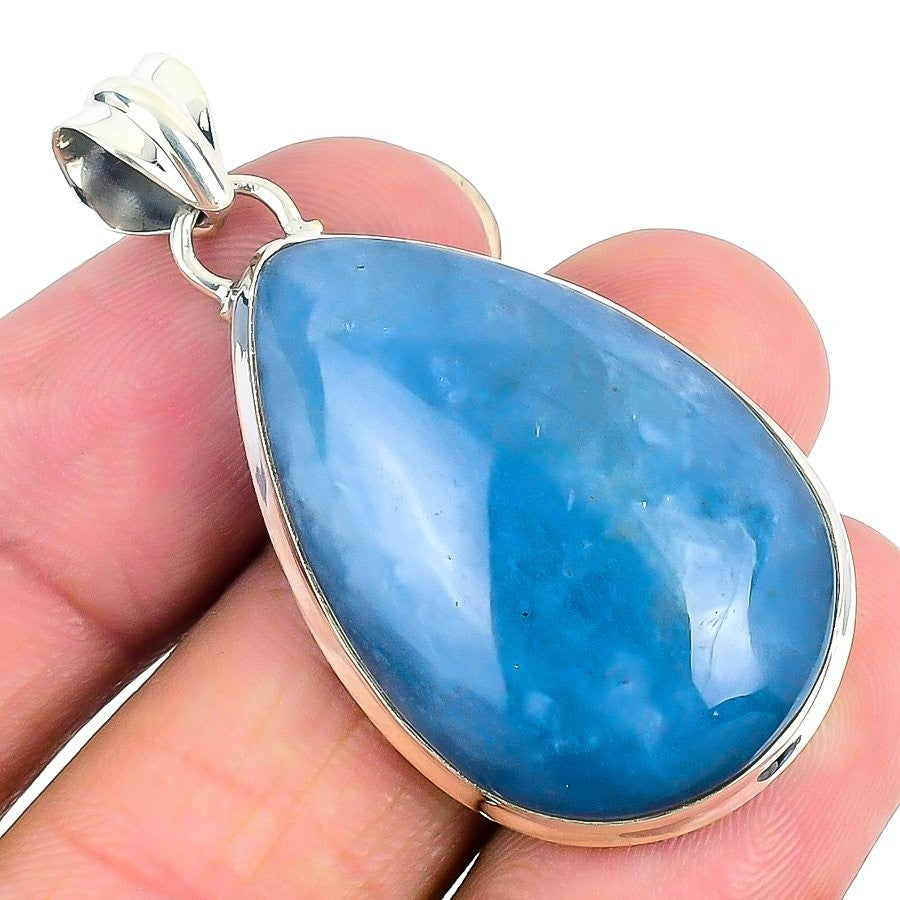Aquamarine Stone Solid Sterling Silver Bezel Daughter Throat Chakra Boho Pendant