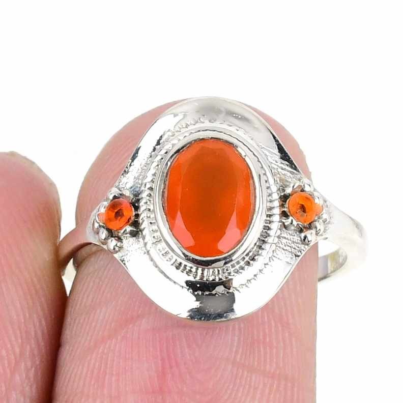 Carnellian Gemstone Solid Sterling Silver Cluster Daughter Gift New Ring Jewelry