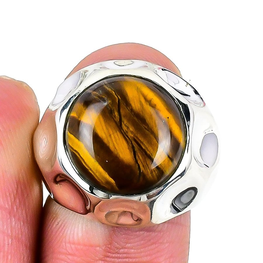 Natural Tiger Eye Solid Silver Anniversary Wedding Statement Ring Jewelry Size 7