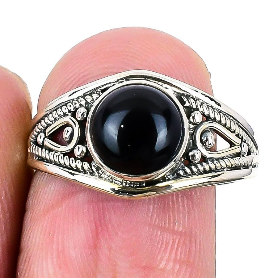 Natural Black Onyx Engagement Cluster Elegant New Ring Size 8.5 925Ā SolidĀ Silver