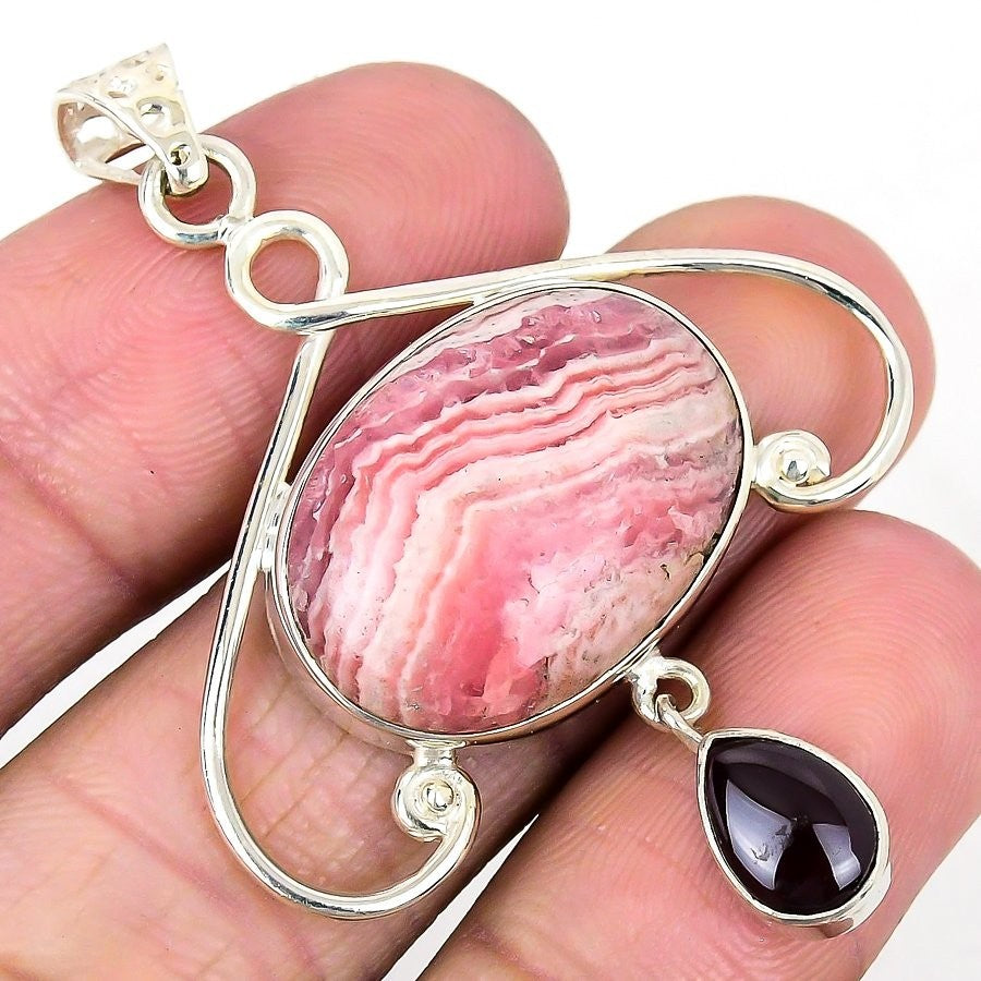 Heart Chakra Natural Rhodochrosite Mother Boho Pendant Jewelry 925Ā SolidĀ Silver