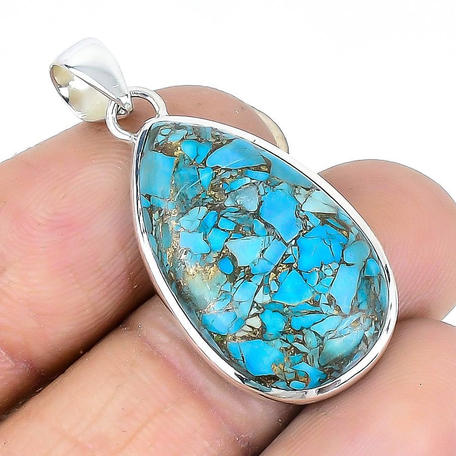 Copper Blue Turquoise Stone Solid Sterling Silver Daughters Day Birthday Pendant