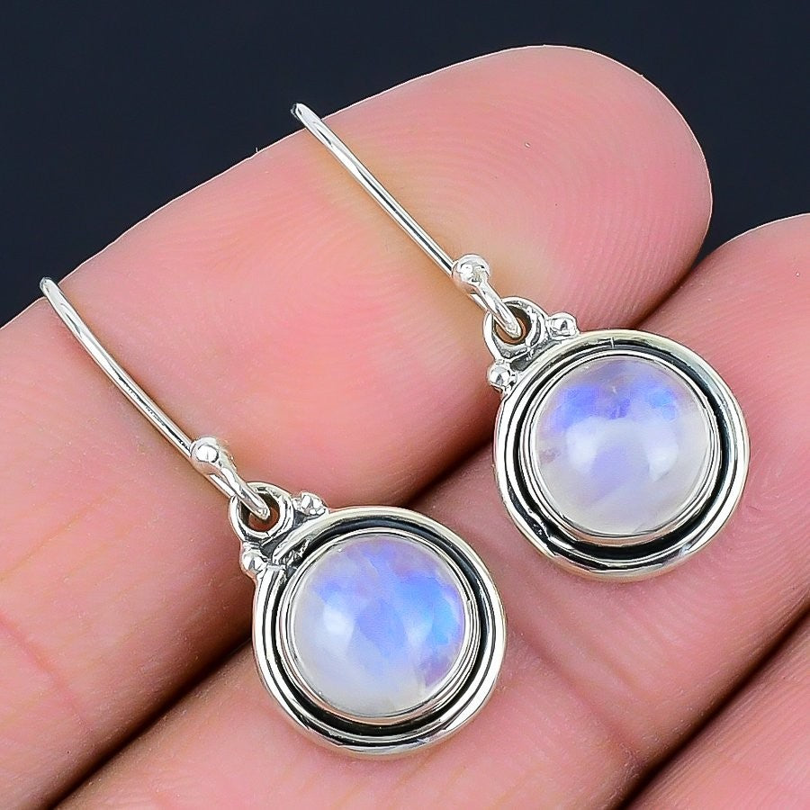Rainbow Moonstone Gemstone Hook Boho Dangle Drop Mother Earrings Solid Silver