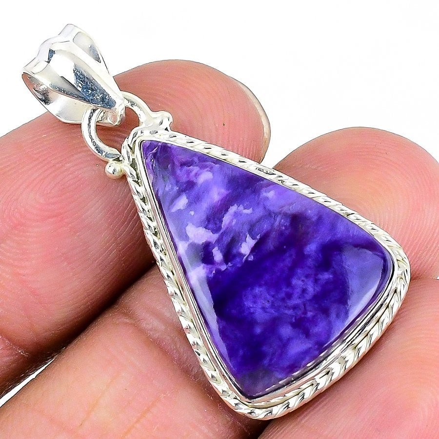 Russian Charoite Gemstone Solid Silver Birthday Art Deco Artisan Pendant Jewelry