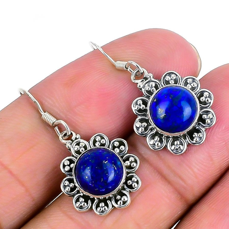 Lapis Lazuli Gemstone 925 Silver Dangle Drop Bezel Hook Daughter Gift Earrings