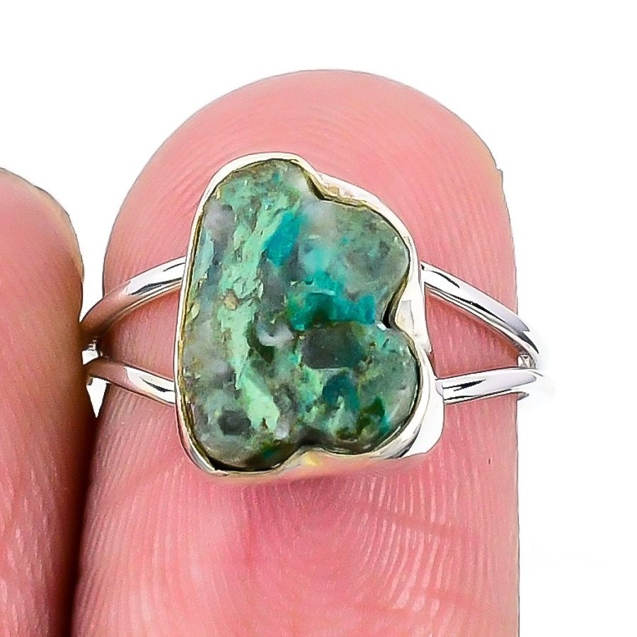 Shattuckite Crysocolla Stone Solid Silver Art Deco Daughter Cluster Ring Size 6