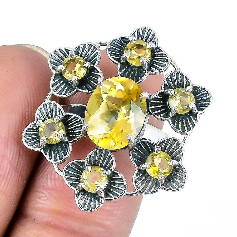 November Natural Citrine Faceted 925 Silver Statement Anniversary Elegant Ring