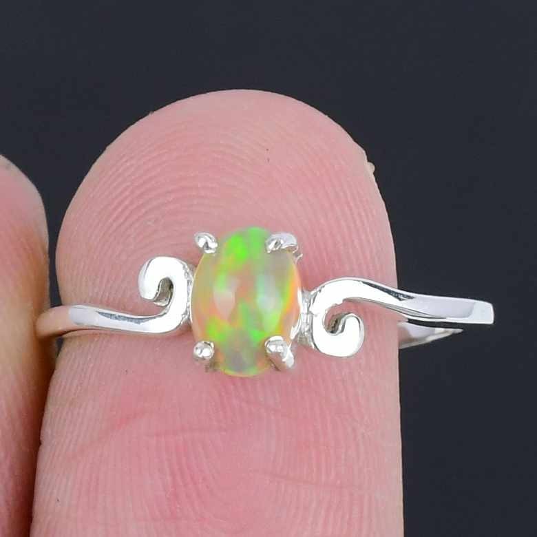 Ethiopian Opal Gemstone Sterling Silver Cluster Wedding Wife Ring Jewelry Size 9