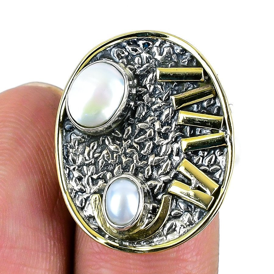 Blister Pearl Gemstone Solid Sterling Silver Statement Bezel Ring Jewelry US 8