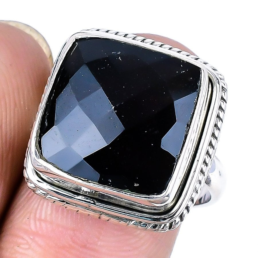 Natural Black Sunstone Sterling Silver Wife Statement Daughters Day Ring Size 9
