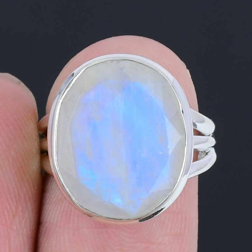 Rainbow Moonstone Stone Wife Statement Ring Jewelry Solid Sterling Silver US 8.5