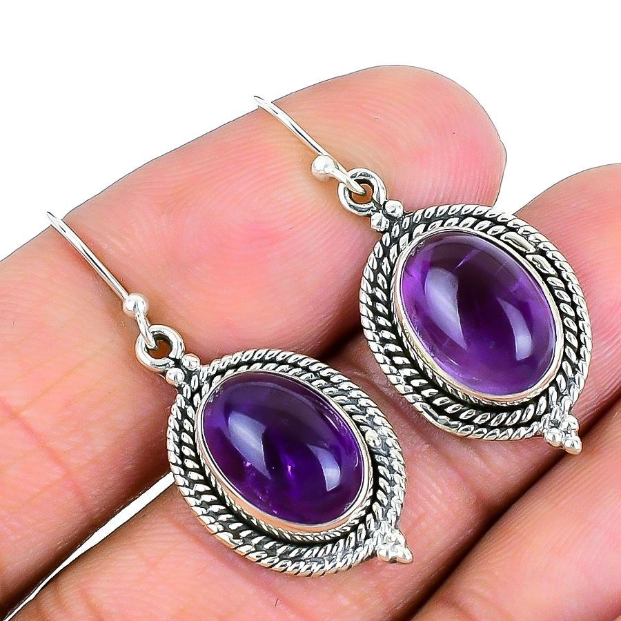 Natural Sage Amethyst Mother Stud Post Engagement Boho Earrings 925Ā SolidĀ Silver