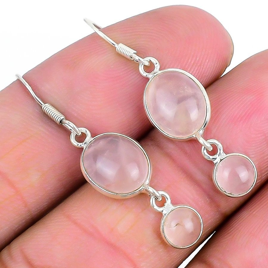 Rose Quartz Stone 925 Silver Anniversary Sister Drop Dangle New Earrings Jewelry